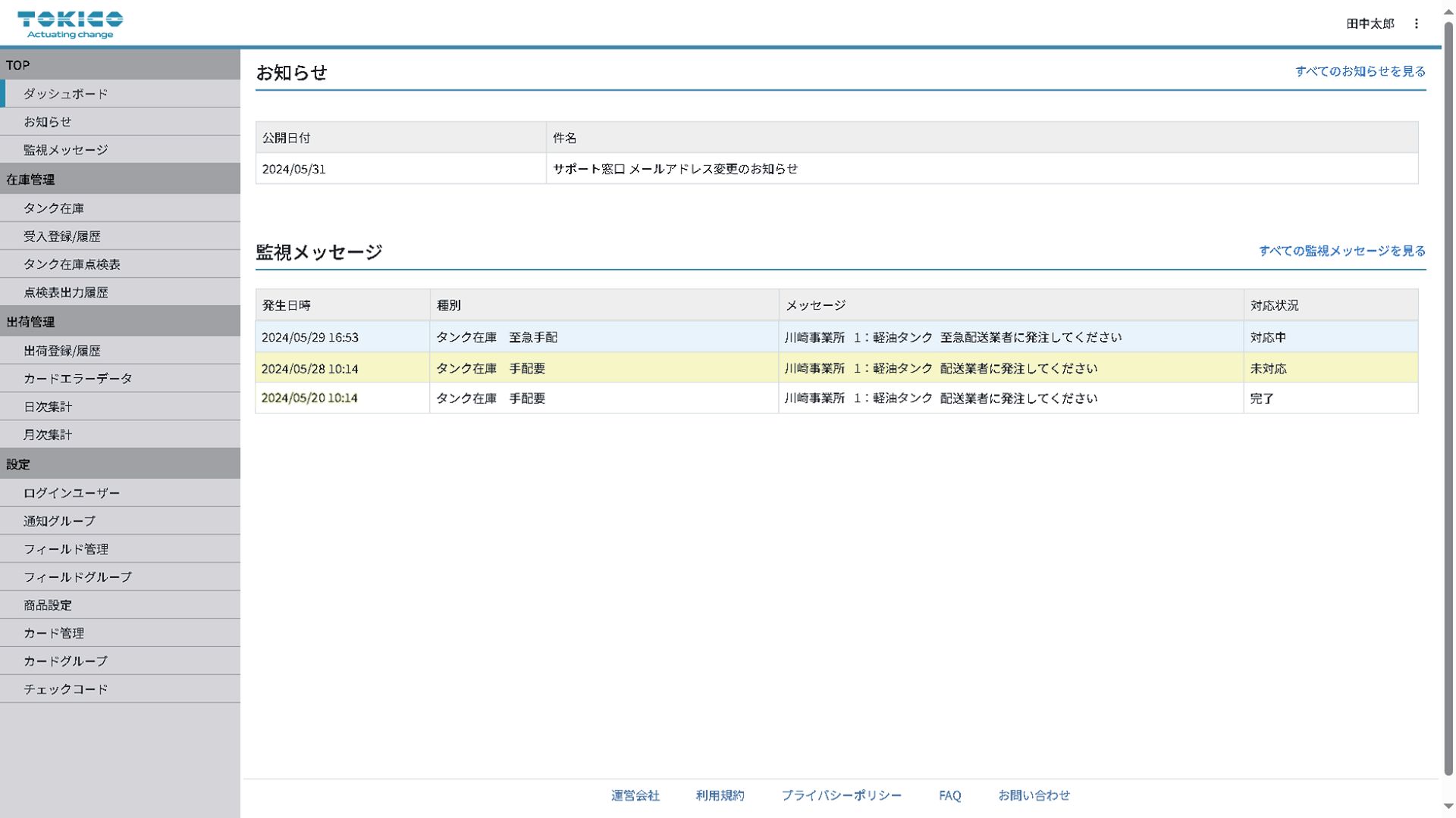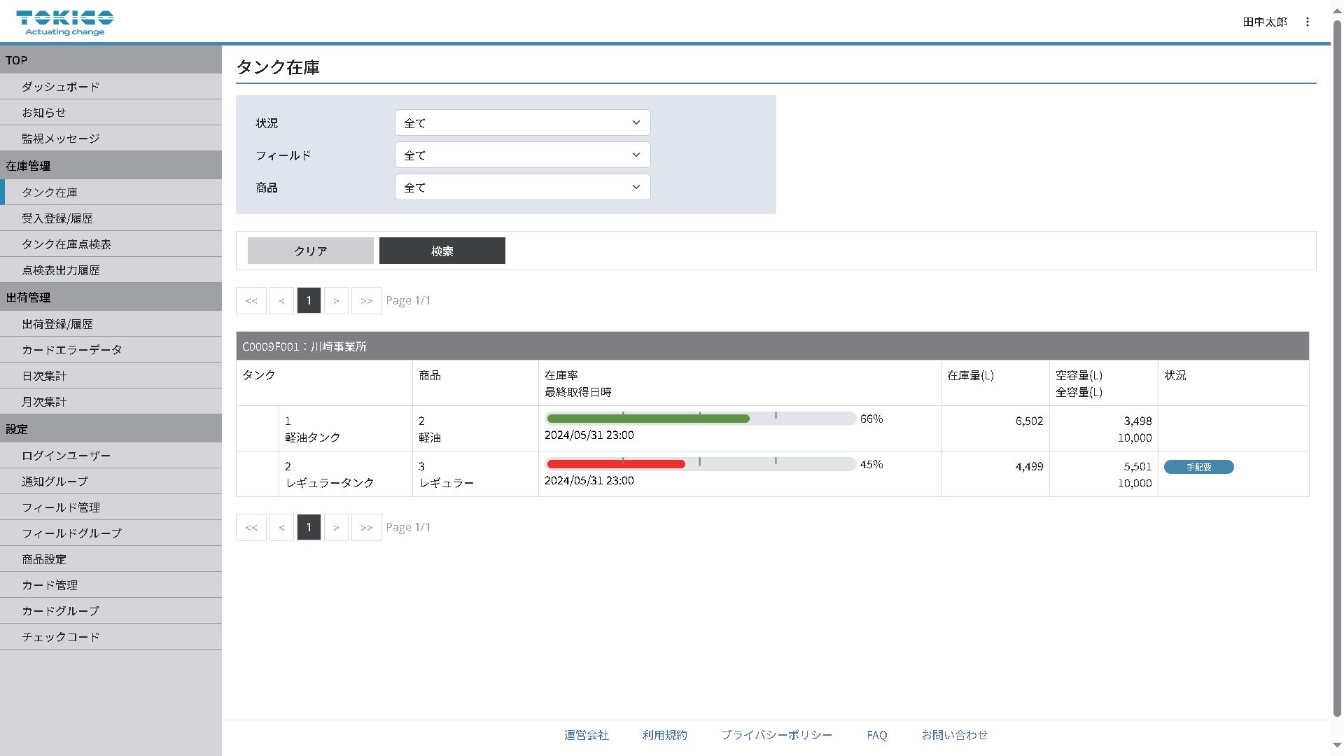 図2 タンク在庫画面(PC画面)