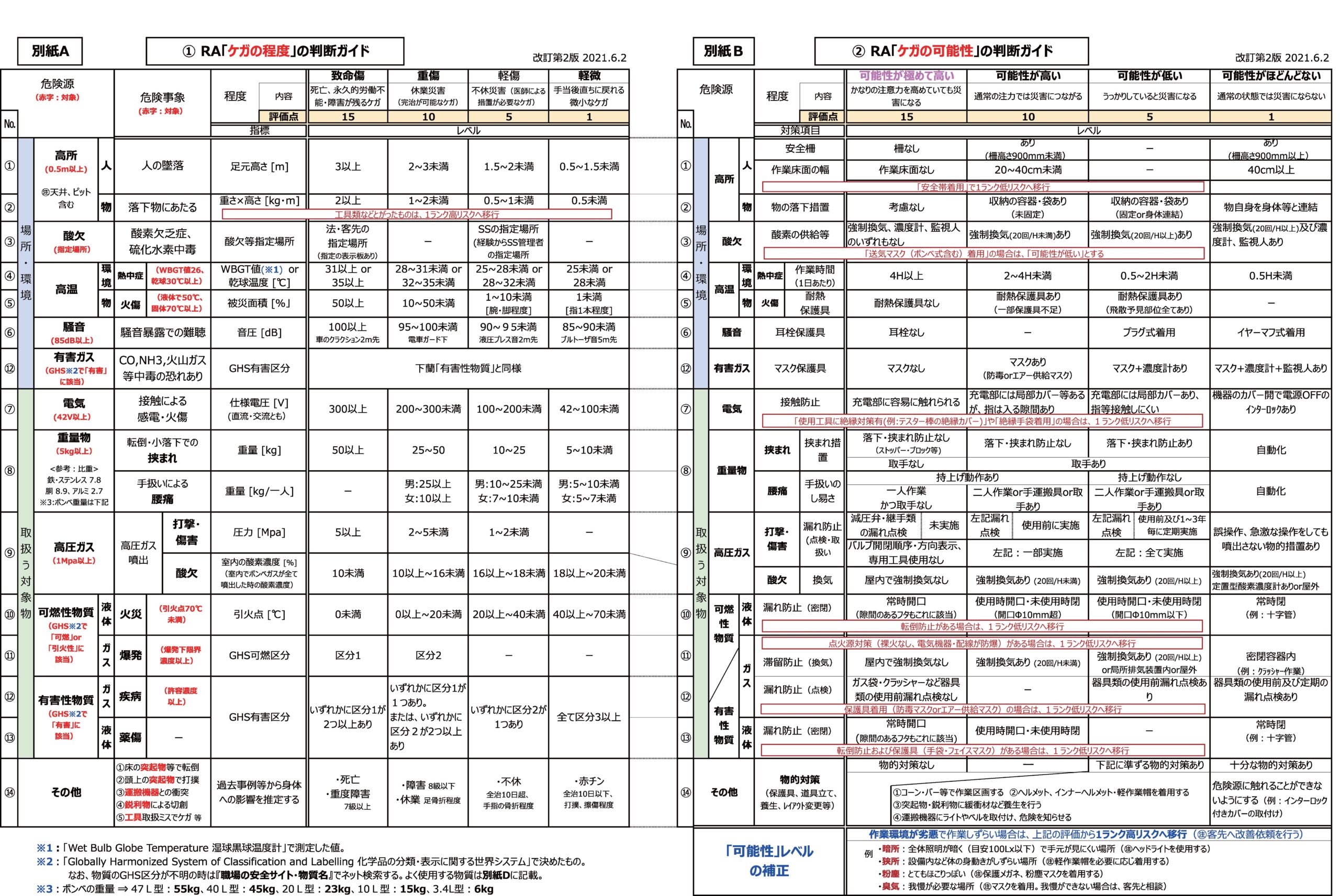 表2「 ケガの程度・ケガの可能性」判断ガイド(RA:リスクアセスメント)